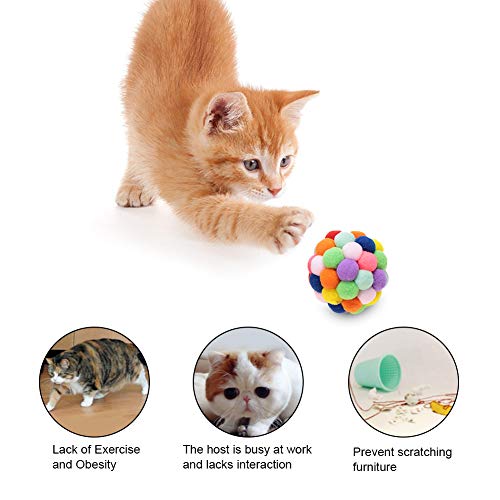 Fleißige und gesunde Katzen — Der Ball bietet stundenlang Bewegung zur Selbstunterhaltung, wenn Sie nicht anwesend sind, wodurch zusätzliche Energie von Ihren Kätzchen verbrannt wird. Es ist handgebunden mit einem Hüpfball und wirft einen leichten Sprung auf den Boden.